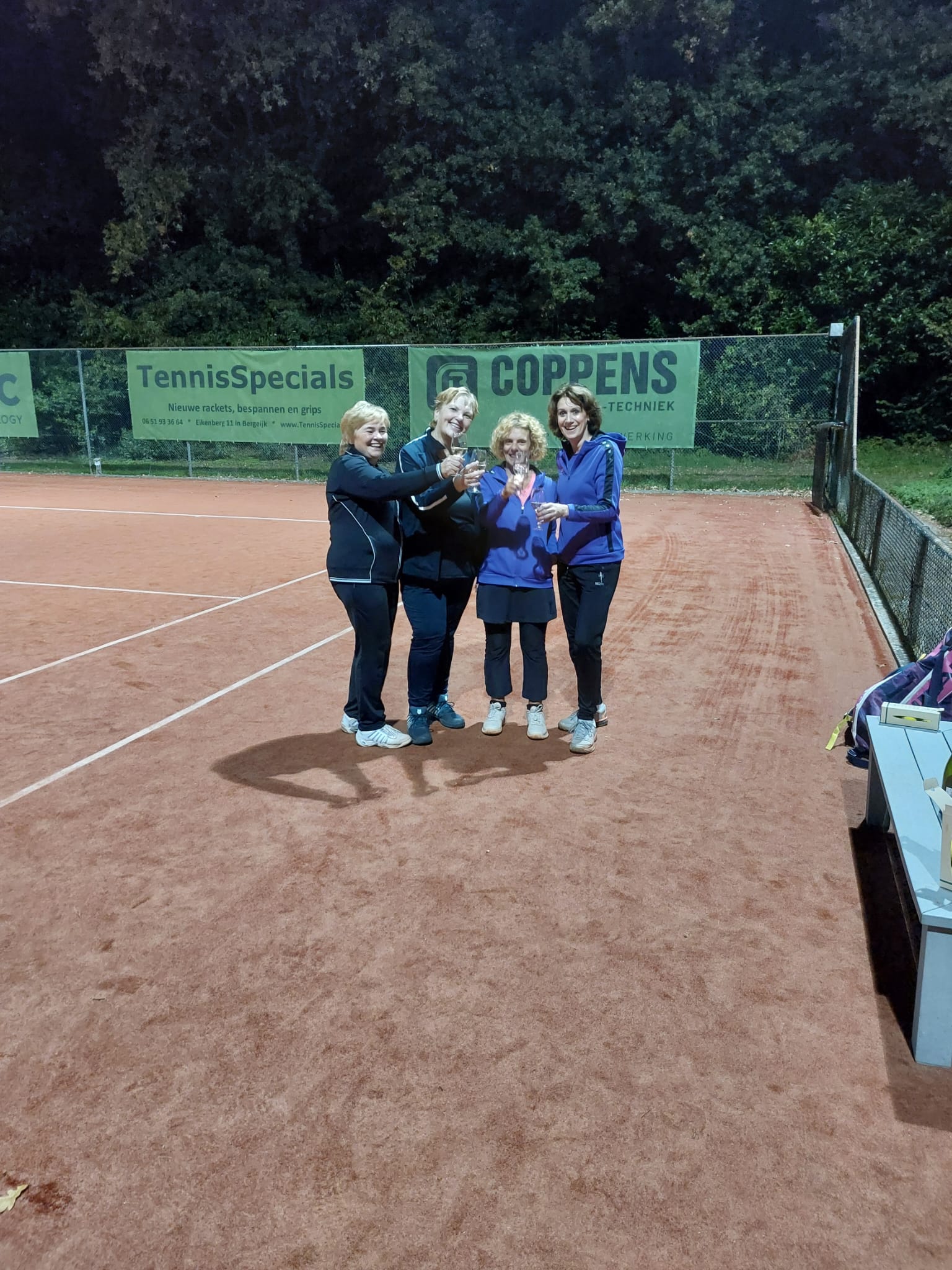 Het team bestaat uit: Kitty Claes, Monique Adriaans, Thea Theuws, Jeanne Veraa op de foto onbreekt Petra Claas die op deze laatste wedstrijd niet aanwezig kon zijn.