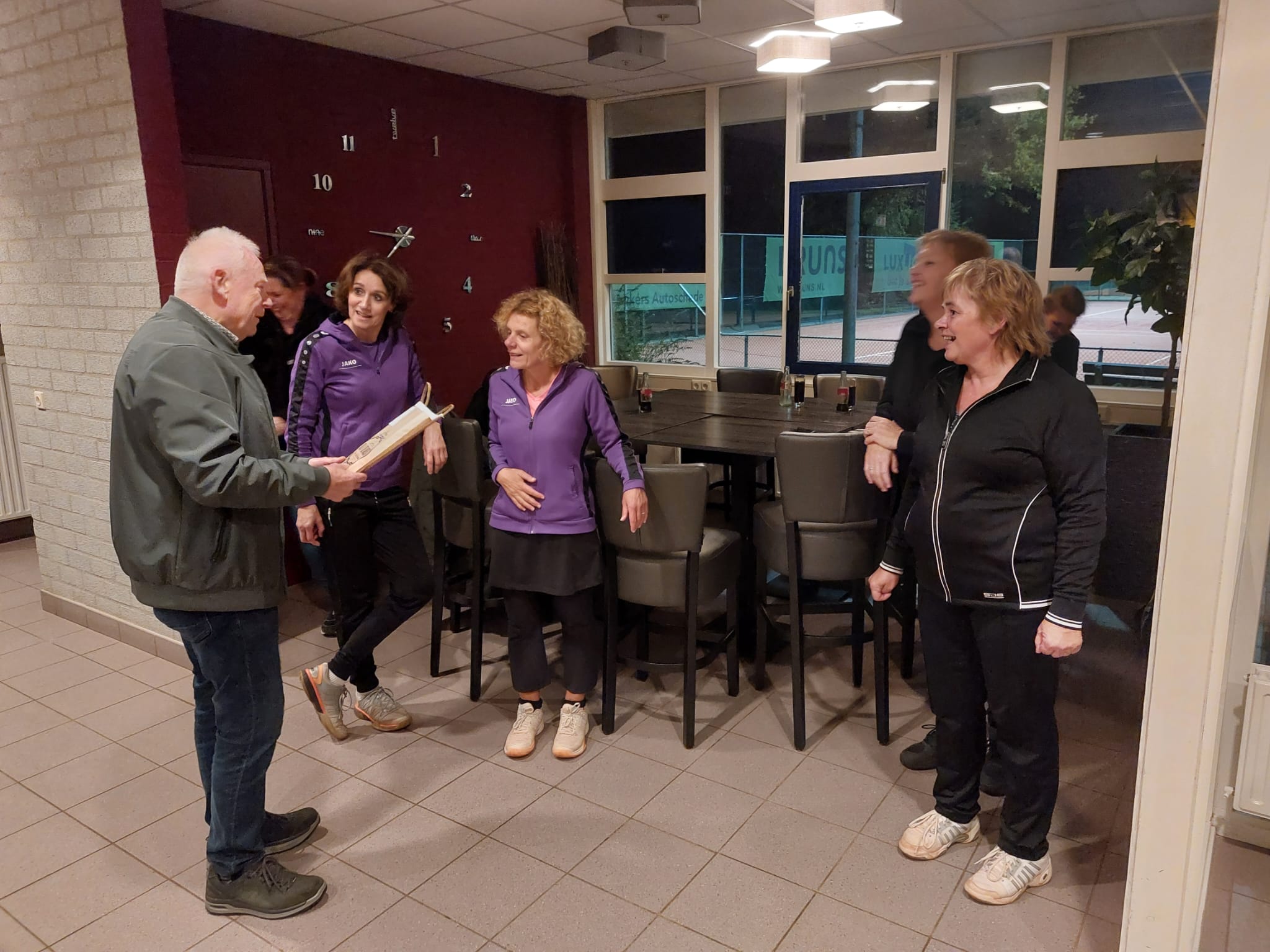 Voorzitter Kees Sanders feliciteerde de dames met het behaalde succes!
